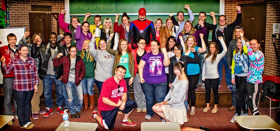I was honored to be a guest speaker at Ripon College (in Ripon, WI), a small town college near Fon Du Lac, and the place where Harrison Ford first took an acting class. Professor Marc Eaton teaches a “Sociology of the Paranormal” class there, and decided to take a few days discussing Real Life Superheroes in addition to ghosts, UFOs, ESP, and cryptozoology.