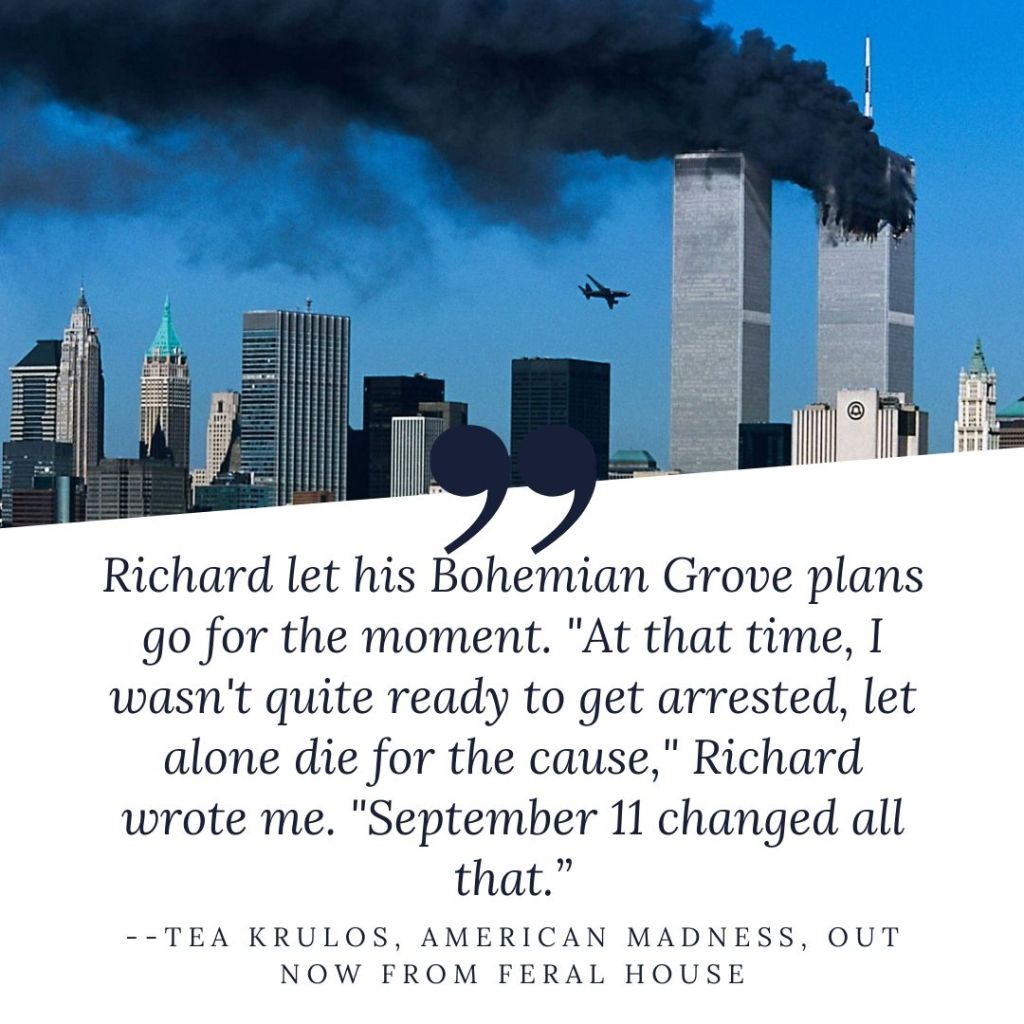 “Ruiner,” Nine Inch Nails/ popped in my head while I was thinking of Richard’s raid on the Bohemian Grove, detailed in a chapter titled “Burn the Owl.”