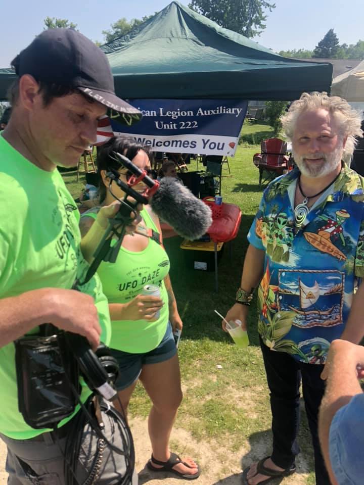 The Tea’s Weird Week podcast crew– myself, co-host Heidi, and sound engineer Andrew– took a short road trip to Dundee, Wisconsin to attend the 33rd annual “UFO Daze.” This is an extraterrestrial themed event at a bar called Benson’s Hide-a-Way, located on the shore of Long Lake. I loved it! This was a distinctly Wisconsin “Up North” type of UFO event– beer, brats, funny alien costumes, a tinfoil hat competition, an “Alien Juice” drink special, and people cruising on pontoons on Long Lake. In addition to locals, who were there for some day drinking fun, there was a good number of people we met who claim to have seen a UFO, been abducted by one, or even hail from a different planet themselves!
