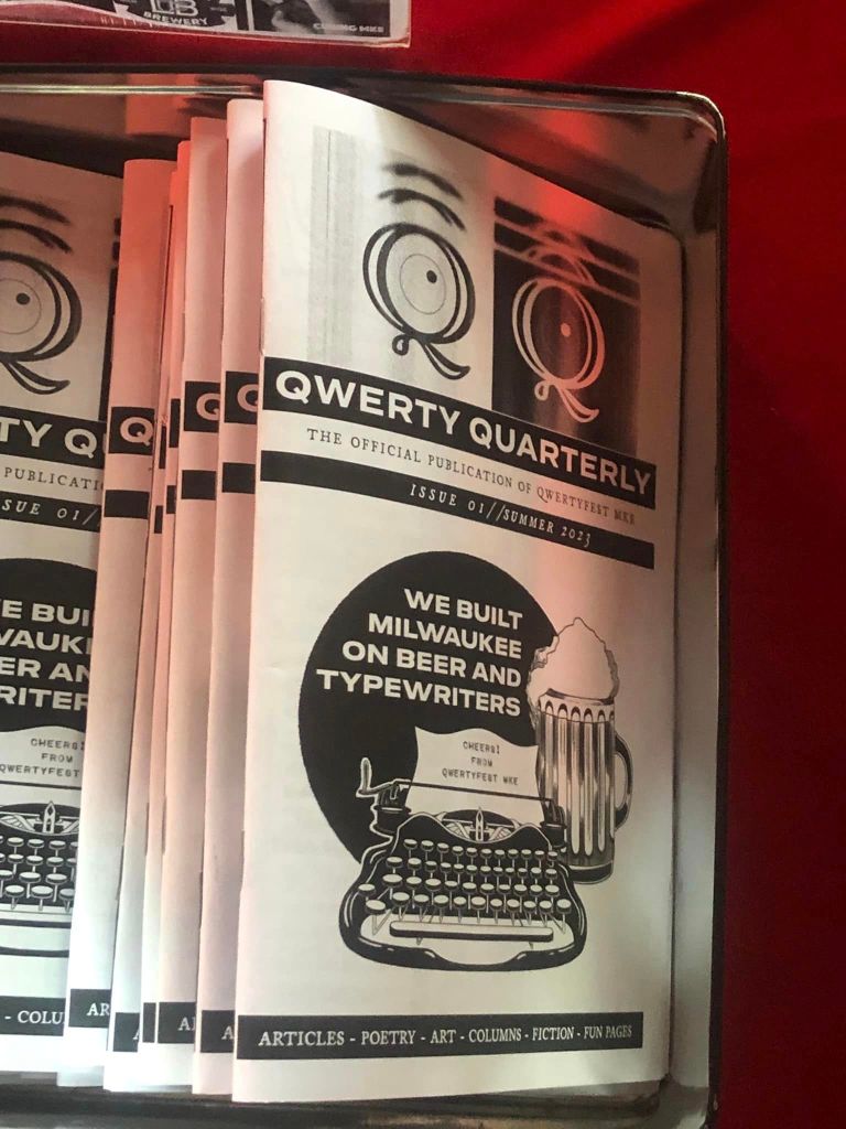 One aspect of the event I’m quite proud of is our official QWERTYFEST publication, QWERTY Quarterly. It’s a zine/ lit journal that features articles, poems, art, columns, fiction, fun pages, and ads from our wonderful sponsors, plus a full fest schedule. Me and Molly are editors, Alicia Krupsky is art director and designer (she also created our logo and “beer and typewriters” design). Peter Burzynski is poetry editor.