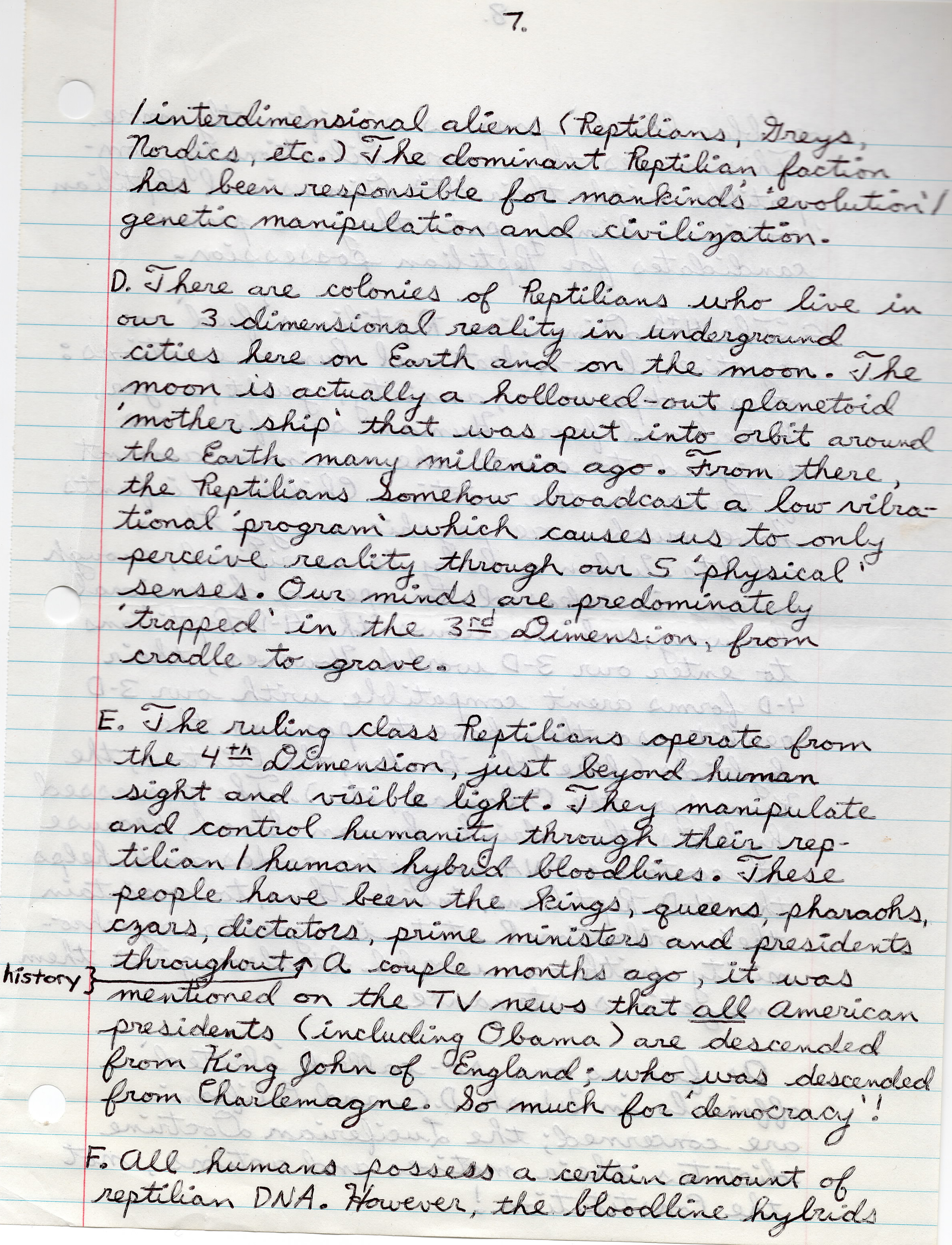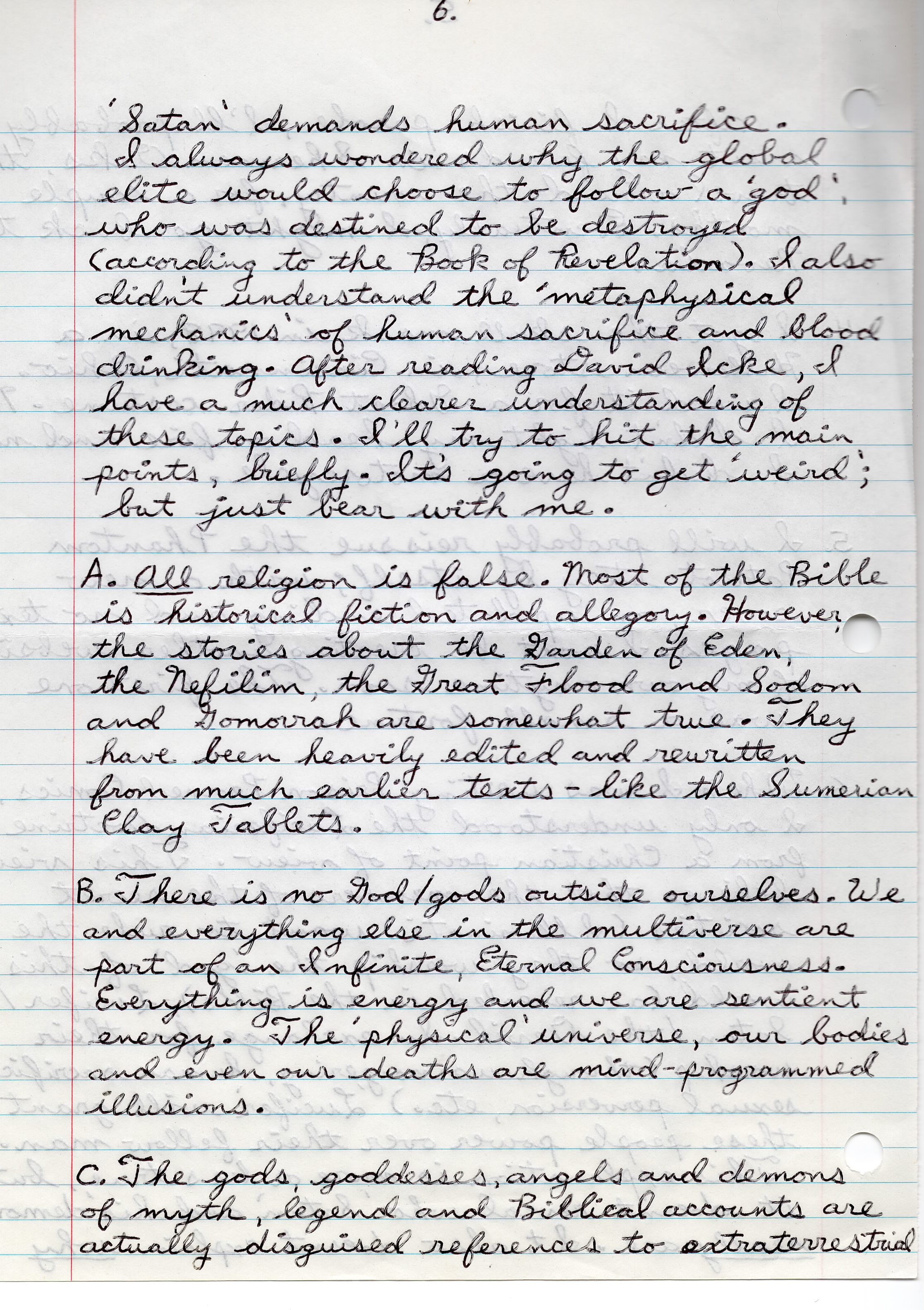 The following is three pages from the second letter I received from Richard McCaslin, dated Oct.25, 2010, in which he tries to explain the “Reptilian agenda” to me, based on the theories of David Icke. Here Richard writes “it’s going to get ‘weird’; but just bear with me.”