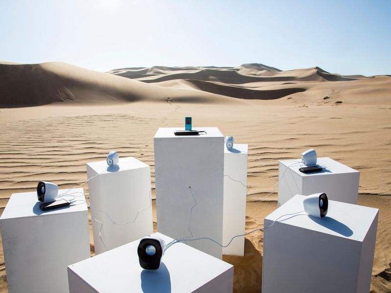 In Namibia an artist named Max Siedentopf has installed a sculpture at an undisclosed location in the Namib Desert. The piece, titled Toto Forever, features 6 outward facing speakers hooked up to an MP3 playing that is playing Toto’s 1982 earworm hit “Africa” on repeat, at least until the Namib Desert’s harsh conditions destroy it.